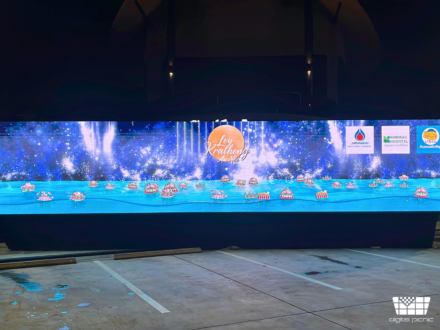 เราได้ออกแบบและติดตั้ง Interactive Installation เพื่อมอบประสบการณ์ลอยกระทงแบบ Zero Waste ให้แก่ชุมชนและผู้เข้าร่วมงาน ผู้เข้าร่วมสามารถสร้างสรรค์กระทงดิจิทัลของตนเองด้วยการระบายสีบนกระดาษแล้วสแกนภาพเพื่ออัปโหลดกระทงขึ้นไป “ลอย” กระทงเสมือนจริงลงบนพื้นที่ฉายภาพอย่างร่วมกับกระทงของผู้เข้าร่วมคนอื่น ๆ